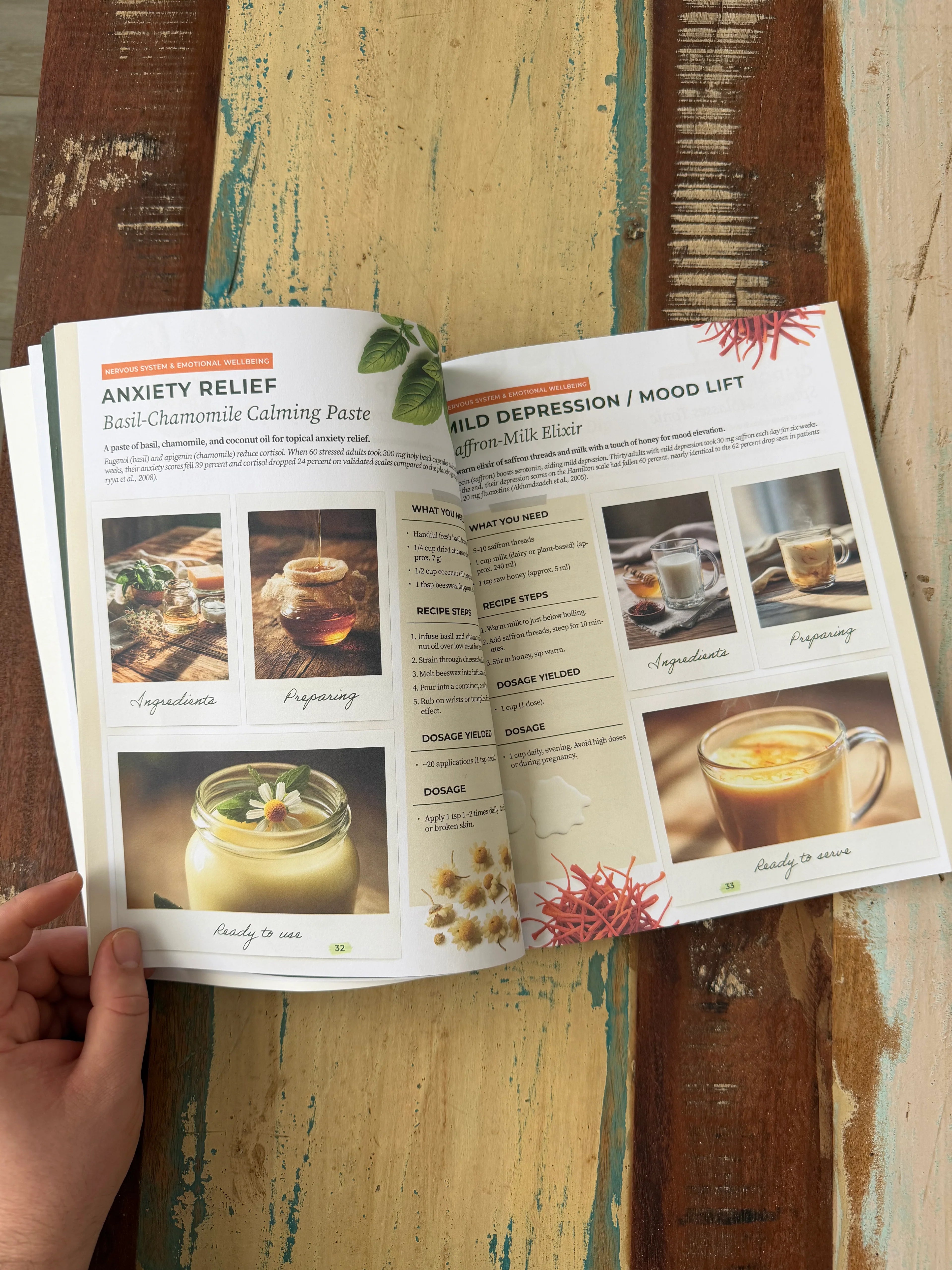 This is not just a herbal guide, it is an interactive healing system. Scan a QR code, choose your remedy, reveal an augmented reality video, then return to the page to master the preparation step by step. Designed to be practical, science-backed, and deeply empowering, this book transforms learning into a ritual you return to again and again.