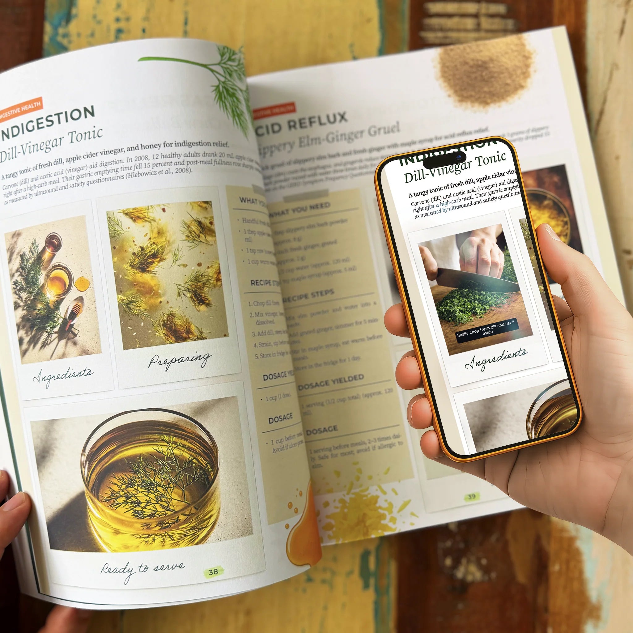 To unlock the interactive experience, all you need is a smartphone to scan the QR codes and access the augmented reality videos. The technology enhances the learning process, but the healing itself remains simple, practical, and accessible. Nature does the work. You simply follow, prepare, and repeat.